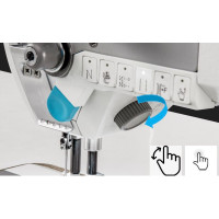 1-needle cylinder-bed lockstitch machine with unison feed, and large hook. Equipped with AC Servo 22..